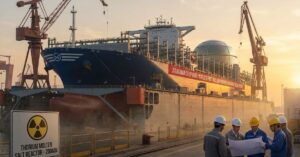The Chinese government-owned Jiangnan Shipyard is building a 25,000 container nuclear-powered ship.